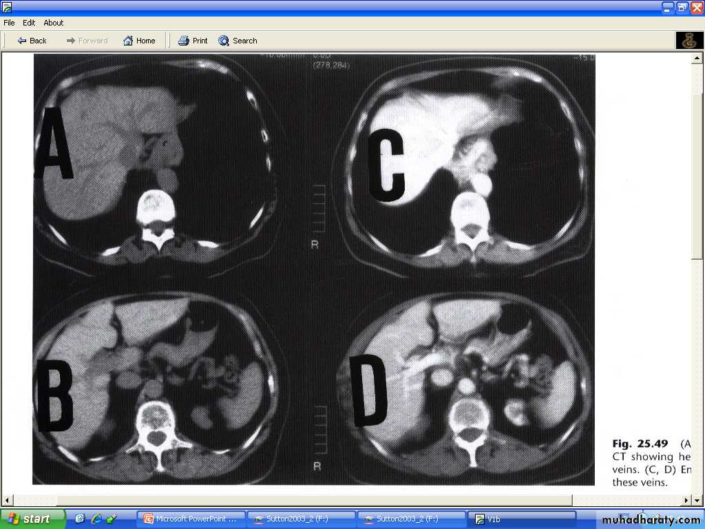 Patency of splenic , portal and hepatic veins can be assessed with Doppler US , CT or MRI.