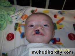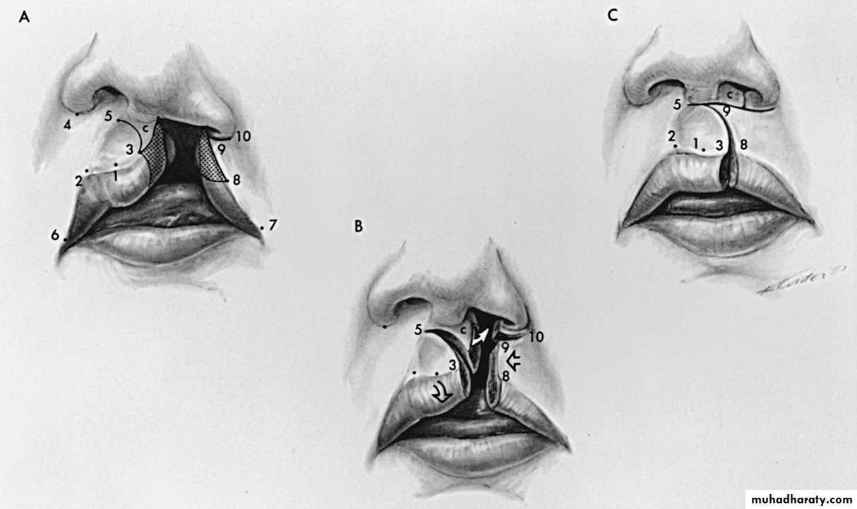 --Millard operation for Cleft lip repairperformed between 3 and 6 months of age, (skin flaps done then reconstruction of orbicularis oris )