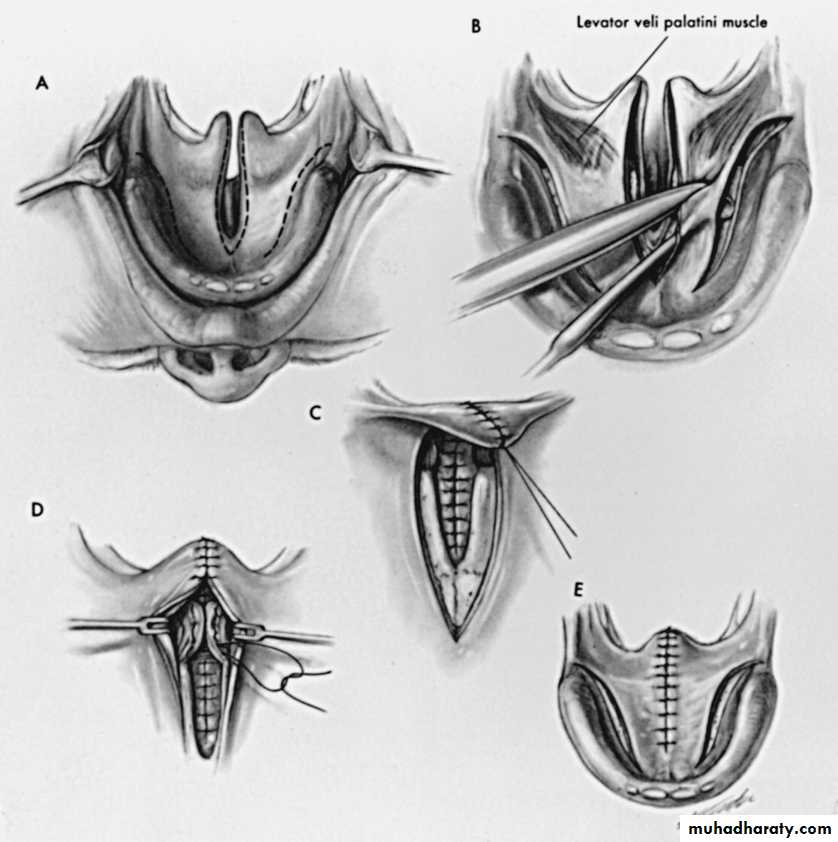 -- intravelar veloplasty (muscular reconstruction of soft palate);