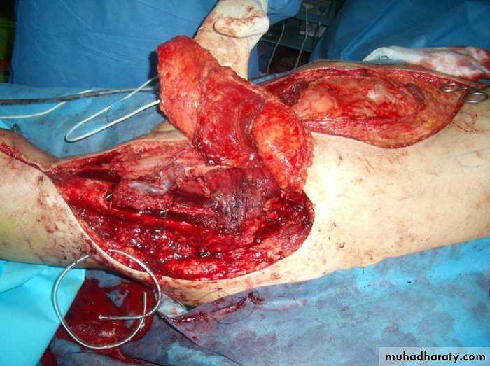 1- Large defect of abdominal wall reconsitruction after:-- Trauma
