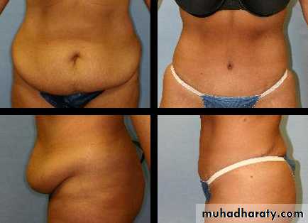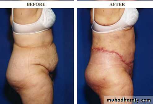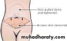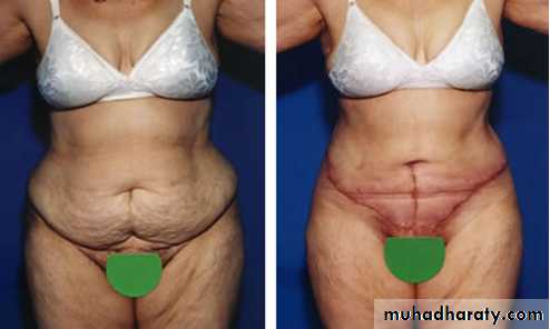 pendulous abdomen usually result after pregnancy , obesitythe transverse incision should be low down ,can change position of umbilicus by do island flap , excise the excess of skin and fat