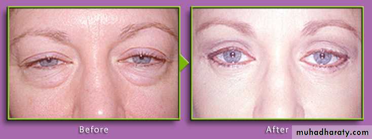 can be corrected by a blepharoplasty or a blepharoplasty combined with a brow lift.