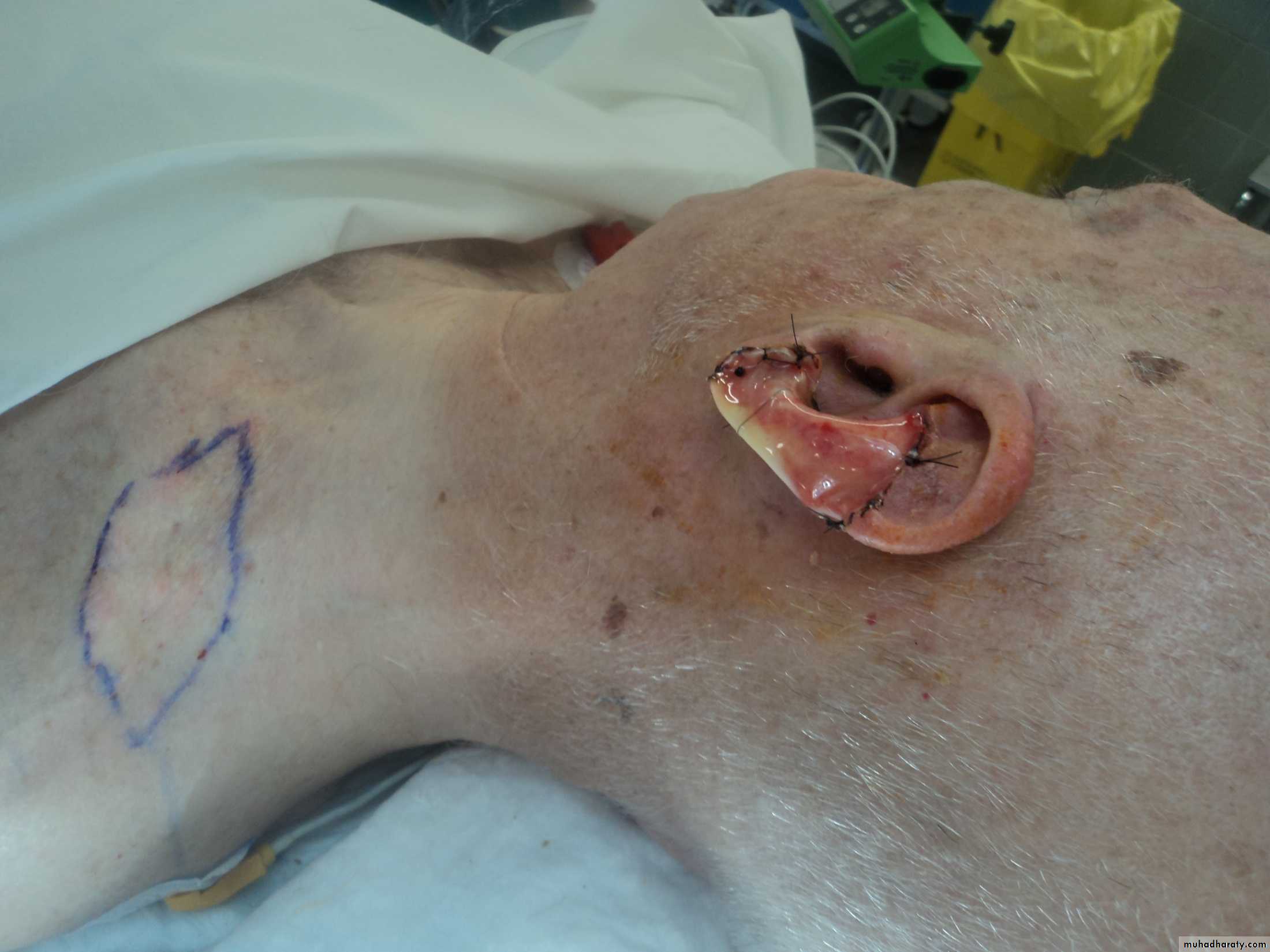 Reconstruction of all or part of the ear for either a congenital or a post-traumatic defectrequires a cartilage framework and a thin-flap skin cover.