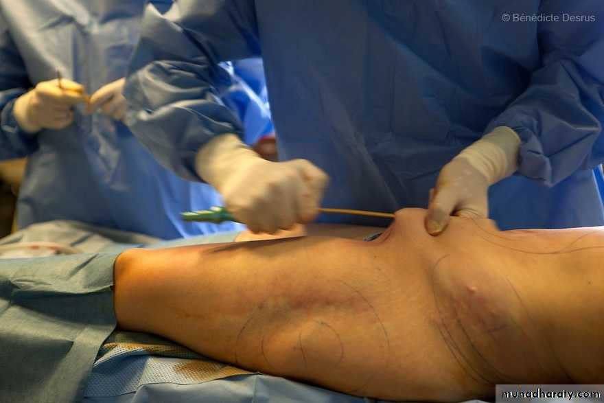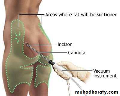 makes a very small incision in the skin, and inserts a tiny tube (cannula) through the skin into the fat layer. The tube is attached to a vacuum that sucks out the fat.It may be using general anesthesia or local anesthesia,
