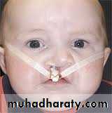 Intermittent airway obstruction is more frequent during sleep and feeding can be life threatening. and managed by:-