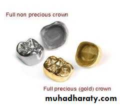 the tooth, such as full metal crown, porcelain fused to