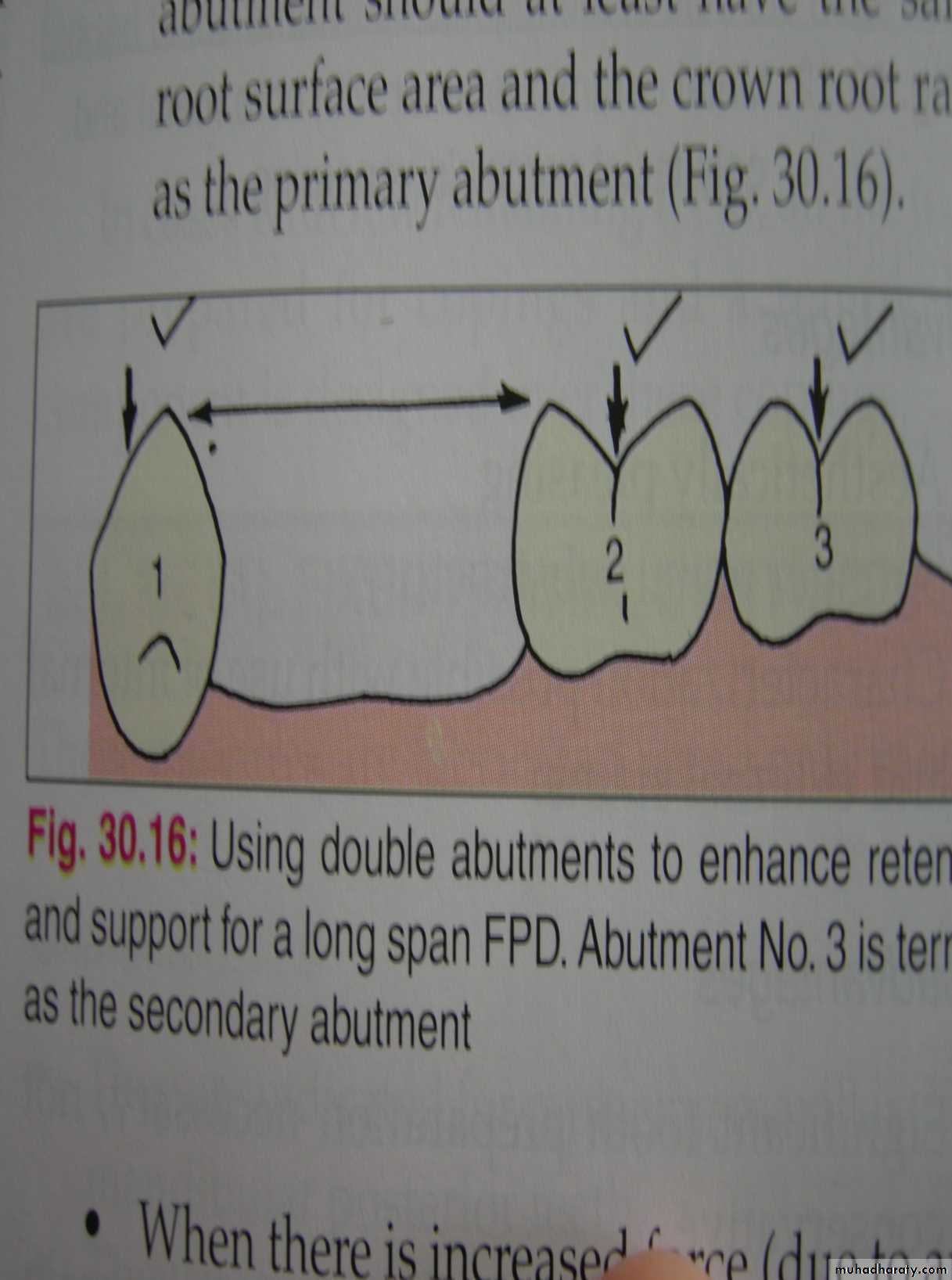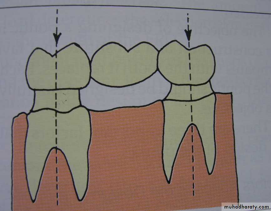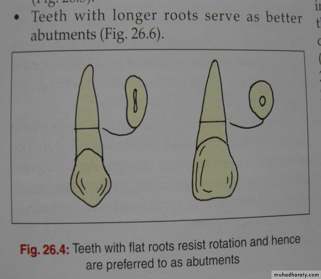 -periodontal ligament area/pericemental area of the abutment teeth should be equal or greater than the periodontal ligament area/pericemental area of the missing tooth/teeth