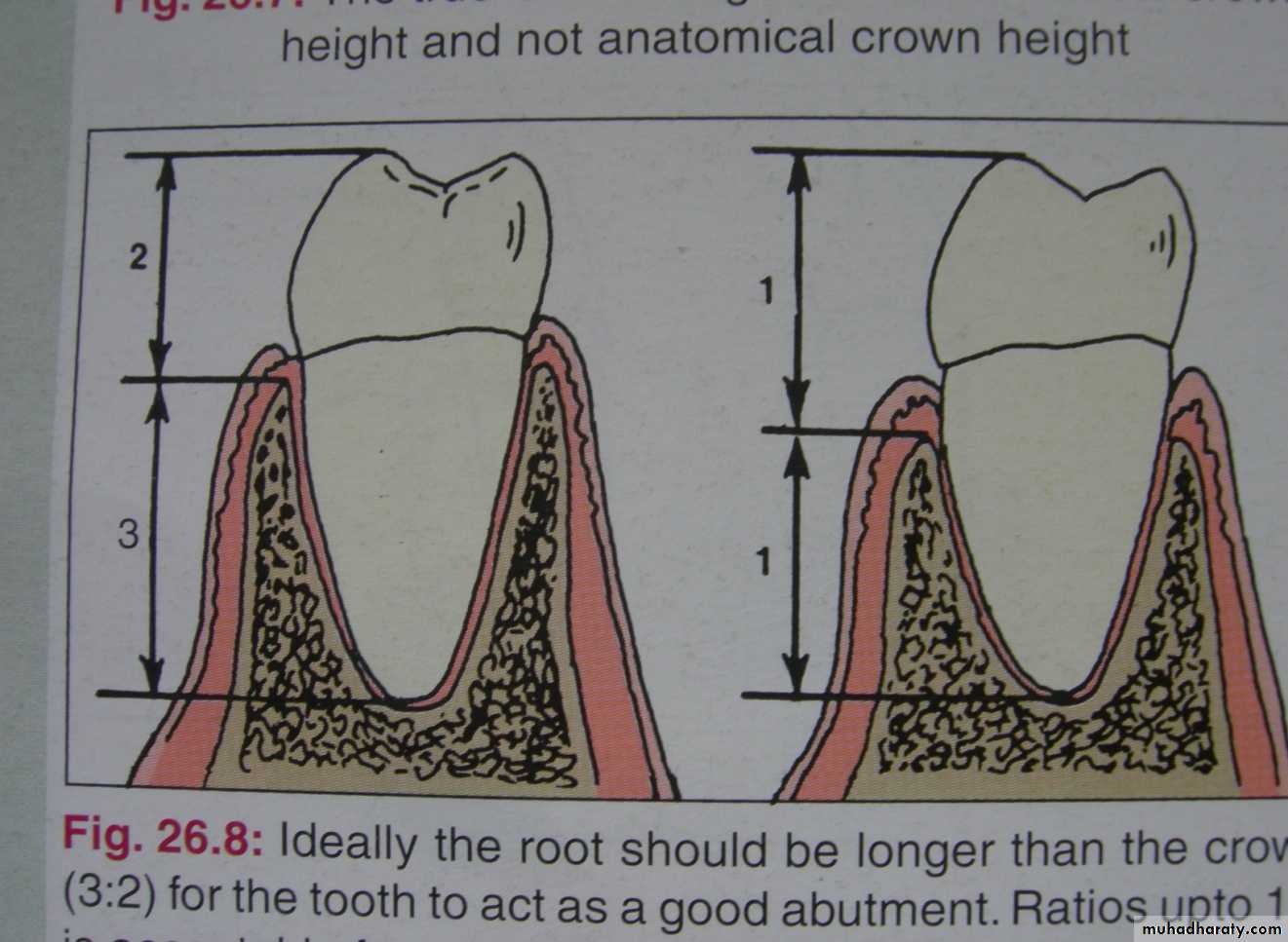 - 1:1.5 ratio has been generally acceptable whereas 1:1 ratio is considered minimal and requires consideration of other factors (ex. # of tooth being replaced, tooth mobility, periodontal health) before it can be used as an abutment6. Ante’s Law