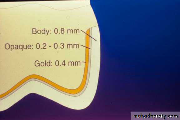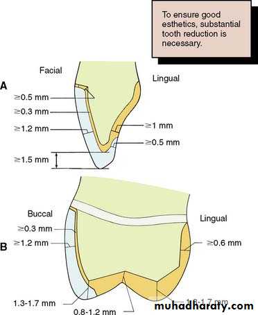 2- To provide enough space for the crown restoration to withstand the force of mastication depends on material used, so the metal material needs little space, while other material need more space .