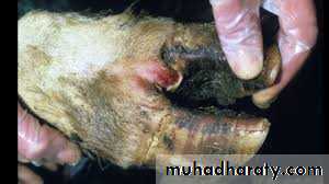 Foot-and-mouth disease or hoof-and-mouth disease (FMD), causative virus is picornavirus, it is an infectious and fatal viral disease that affects cloven-hoofed animals, including domestic and wild bovid. The virus causes a high fever for 2-6 days, the incubation period between 1-12 days, clinical signs are high fever followed by blisters inside the mouth and on the feet, and blister in mouth may rupture and lead to excessive secretion of foamy saliva.