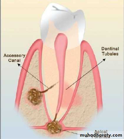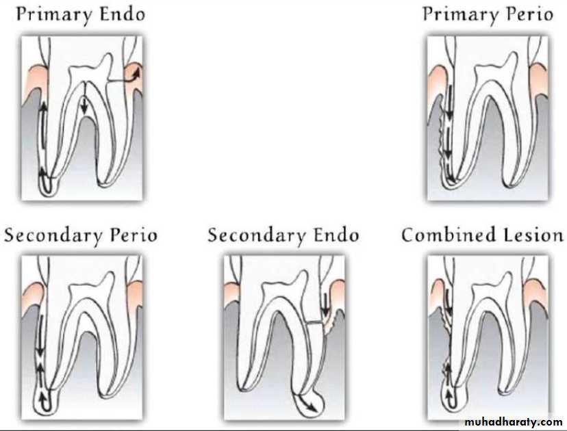 Periodontium and pulpal spaces represent the two primary sites of dental infection from oral bacteria.Persistent infection in the pulp tissue leads to secondary infection and breakdown of tissues in the periodontium. Conversely, severe periodontal disease may initiate or exacerbate inflammatory changes in the pulp tissue.