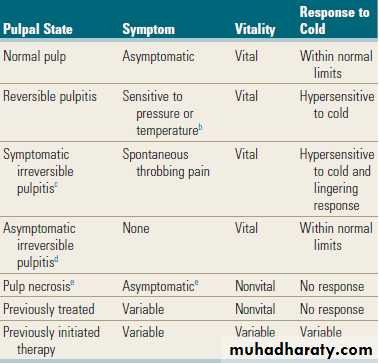 Abnormal response- degenerative changesNo response- pulp necrosis