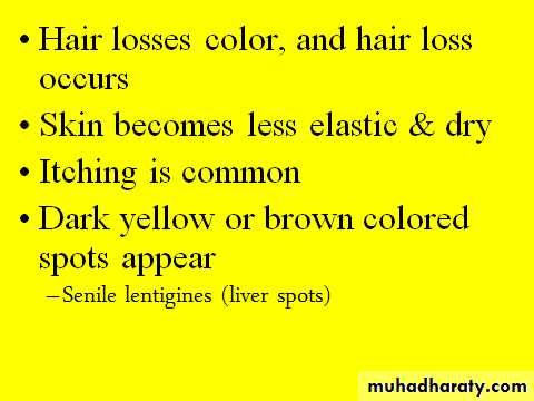 Production of new skin cells decreasesOil and Sweat glands become less active