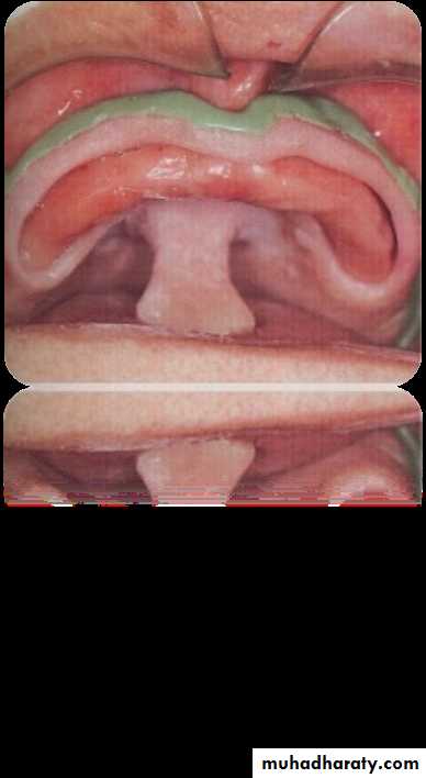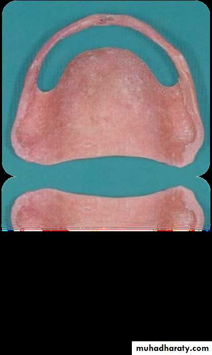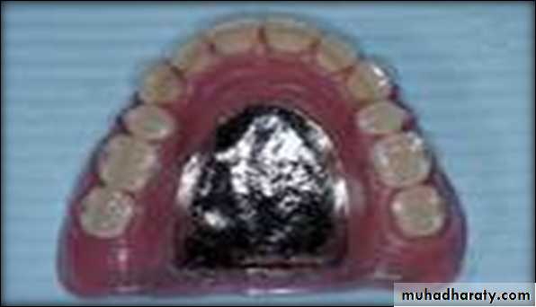• Split- reservoir complete dentures containing salivary substitutes.• 2. Complete dentures with metal palatal portion.