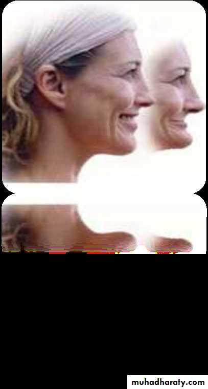 • Pattern of bone loss in mandible differs from that of the maxilla and so the mandible become larger and the maxilla become smaller.