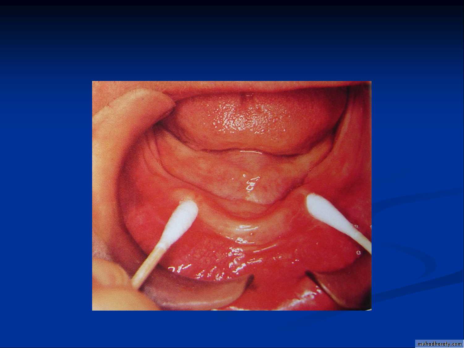 Indicated with advanced ridge resorption with projecting sublingual gland and with presence large mandibular toriProjecting sublingual gland