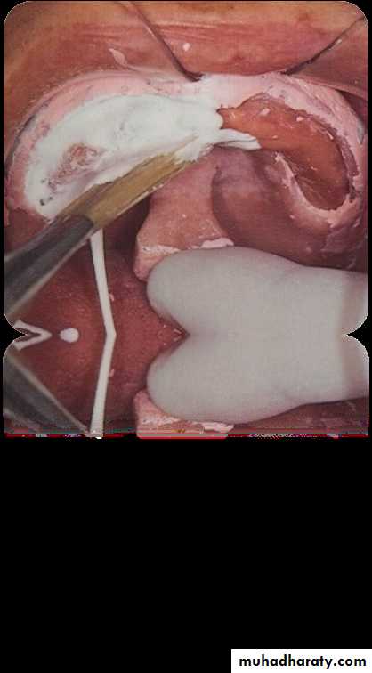 Sufficient relief and escape hole drilled in special tray opposite to flabby tissue to ensure relief of pressure over this area and proper load distribution.A sectional impression technique (Two part impression technique)
