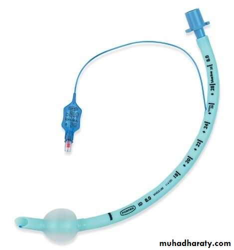 • an extensive range of tracheal tubes is available.• Tracheal tubes are usually inserted via the mouth, or if necessary via the nose (e.g.for intraoral surgery).