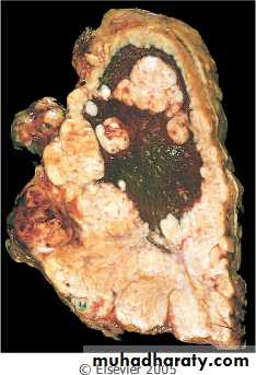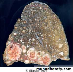 Miliary pattern (many small neoplasms)Cannon ball pattern (one large, spherical, well demarcated neoplasm).