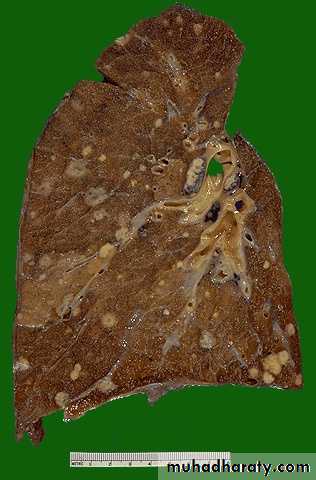 Etiology: any malignancy may reach lung from lymph spread or vascular spread.
