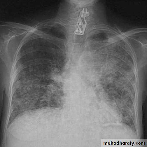 Lymphangitis carcinomatosis (spread along lymphatics - white lines through lungs instead of black lines marking lymphatics.
