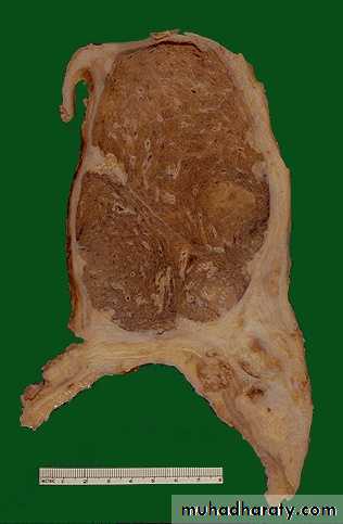 solid, glistening, and mucoid, reflects a diffusely infiltrating tumor