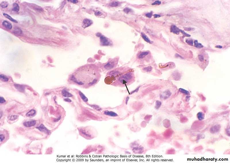 Asbestos is not removed or metabolized from the lung, and hence the fibers remain in the body for life. Asbestos fibers gather near the mesothelial cell layer, where they generate reactive oxygen species that cause DNA damage and potentially oncogenic mutations.