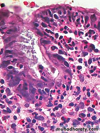 Dysplasia: with long-standing chronic gastritis, the epithelium develops dysplastic changes