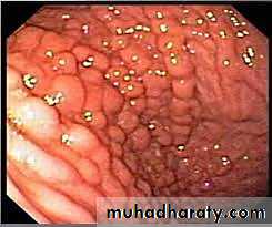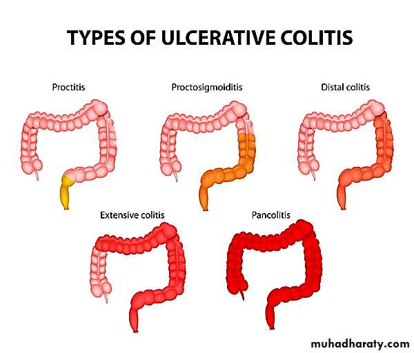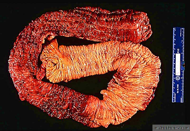 A key feature of UC is that the mucosal damage is continuous from the rectum and extending proximally.The mucosa may exhibit reddening and granularity with easy bleeding.