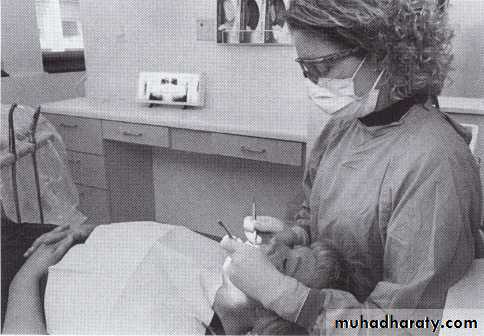 • A high-speed handpiece is capable of creating airborne contaminants from both bacterial residents in the dental unit water spray system and from microbial contaminants from saliva, tissues, blood, plaque, and fine debris cut from carious teeth.• Hand-to-Surface Contamination