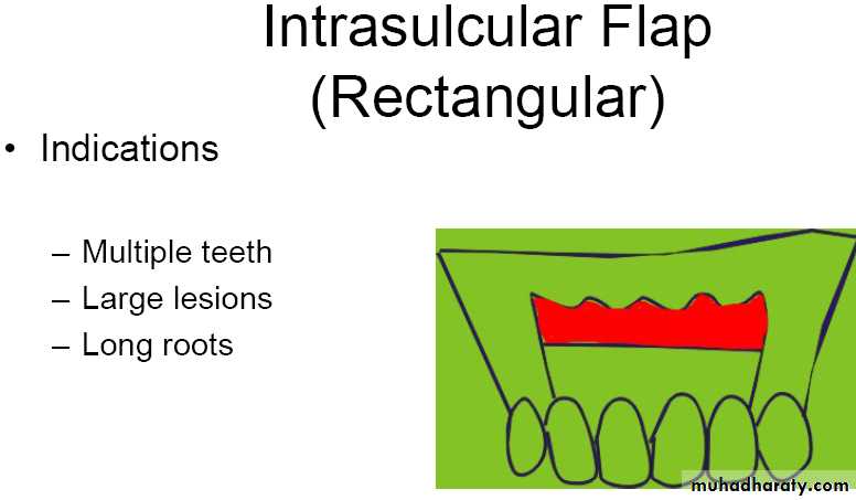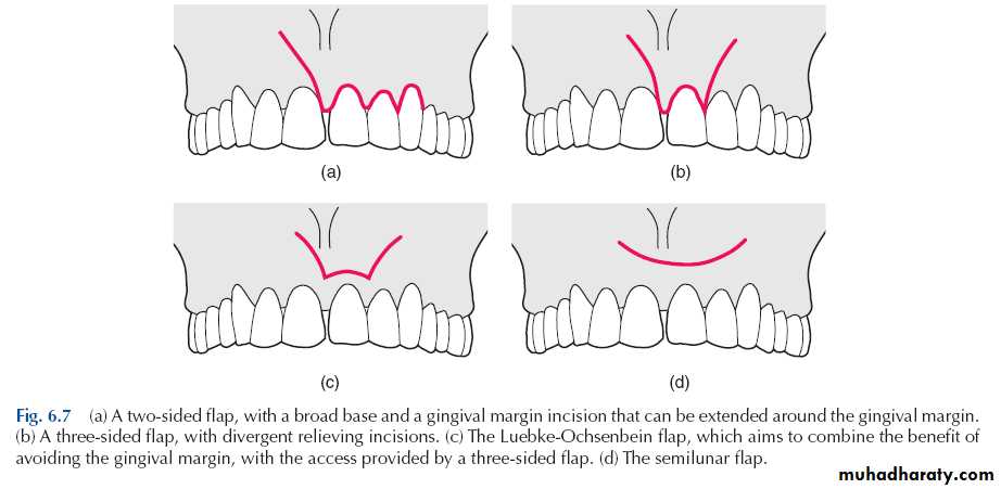• Termination of the vertical incision at the gingival crest must be at the line angle of the tooth, dental papilla should be included or excluded.