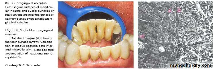 • The required time for supragingival calculus formation in some persons less than 2 weeks & start 4-8h after plaque accumulation.• After 48h.,50% of plaque become meniralized