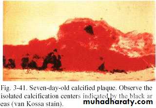 • This occurs by binding of calcium ions to carbohydrate protein complex & precipitation of crystalline calcium & phosphate salts.