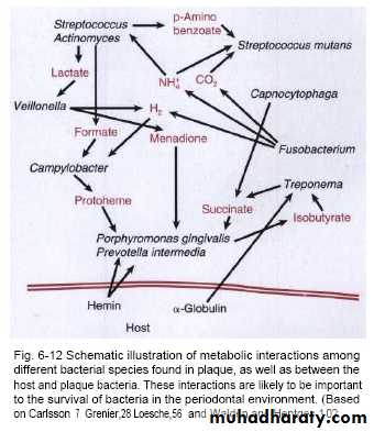 • extracellular microbial products of the neighbouring bacteria,especially in dense communities such as plaque.