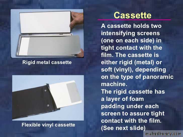 Cassette are available in a variety of sizes that corresponding to the film size and screens.The cassette is may be flexible or rigid.