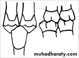 Distal cusps of lower 7are elevated & act as plunger cusp between extruded upper 6 & 7.