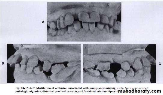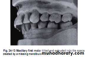 If the lower 6 has been missed & not replacedThere will be mesial drifting & tilting of lower 7& 8 with the extrusion of upper 6.