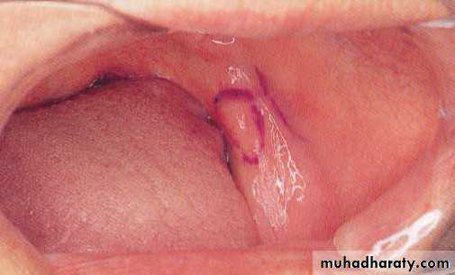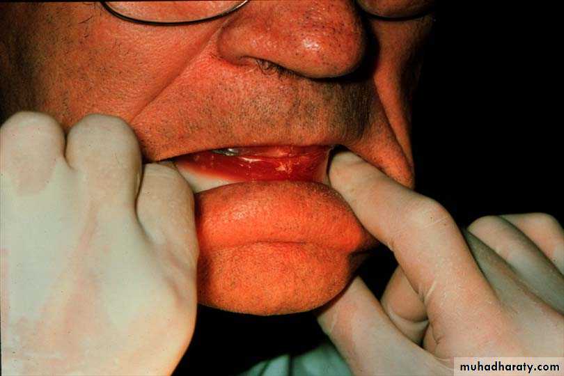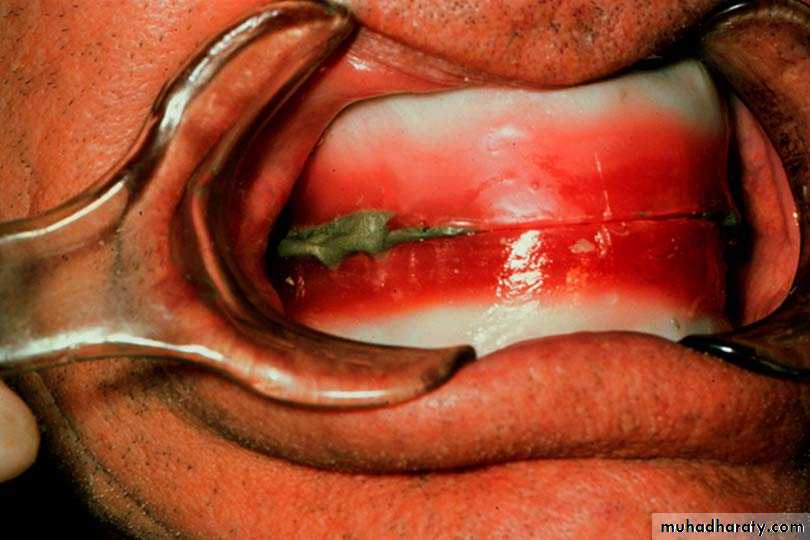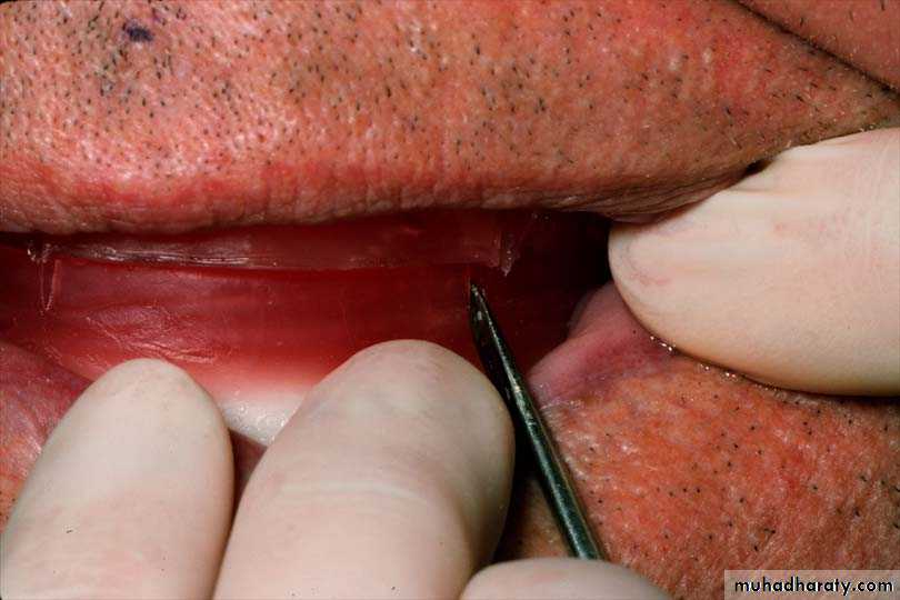 • instruct the patient to turn the tongue back ward toward the posterior border of the upper denture.