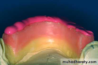Wax rims are smooth and have a flat occlusal surface. They are about as wide buccolingually as denture teeth – wider in the posterior, narrower in the anteriorThe occlusal rim must be centered buccallingually over and parallel to the residual ridge crest.