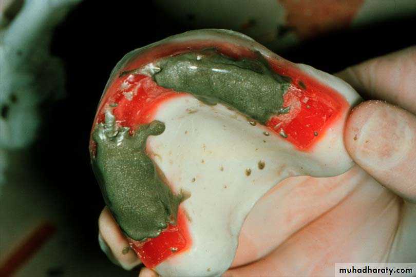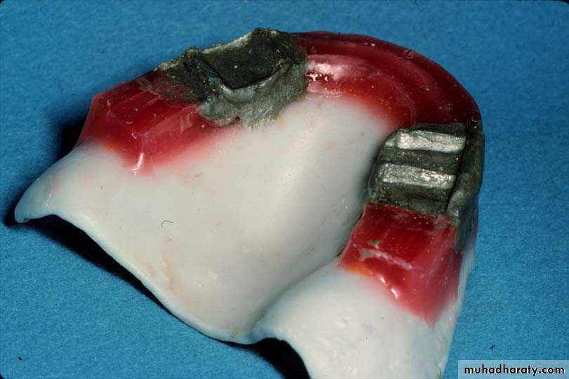 The purpose of these records is to adjust the articulator to simulate the eccentric movements (lateral and protrusive) of the mandible to the maxillae. This adjustment permit arrangement of the teeth in balanced occlusion. The records are made in the same manner as for centric records, for lateral movement record, Hanu recommend the following formula :