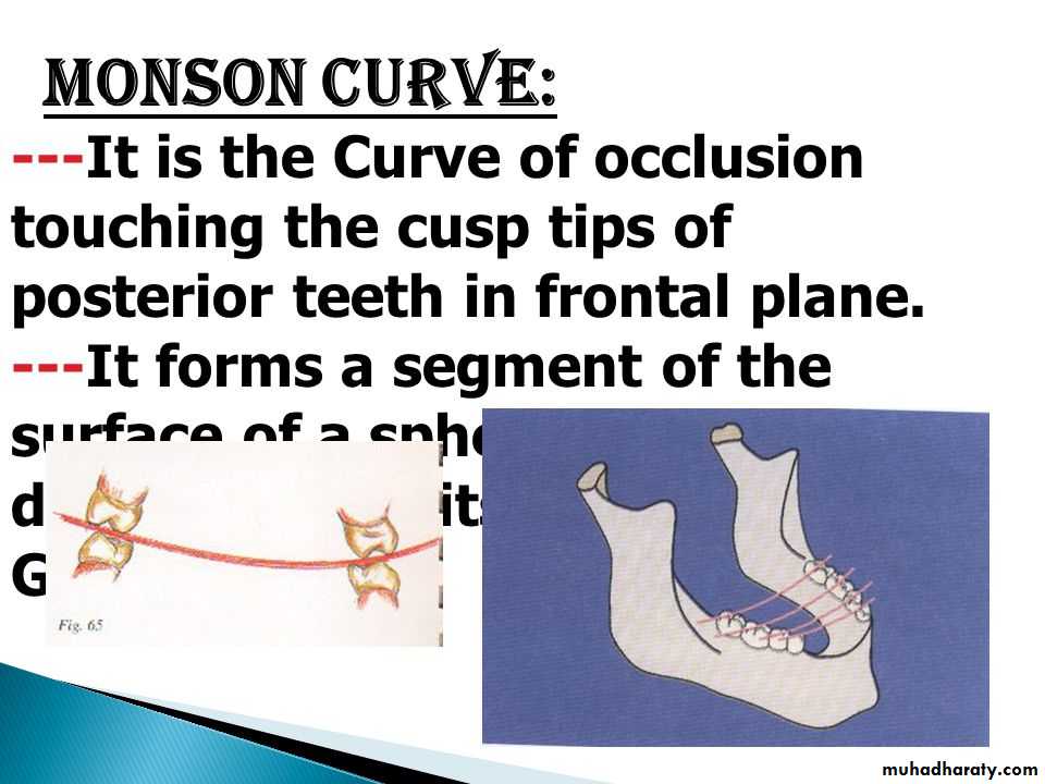 This curve runs across the buccal and palatal cusps of maxillary molars.The artificial teeth should be set following this curve in order to obtain lateral balance of occlusion