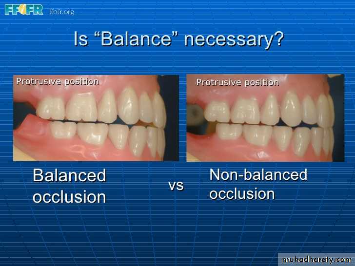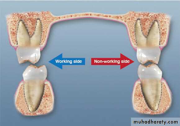 In the case of balanced occlusion, is to achieve even contacts between all maxillary and mandibular teeth on the working side ( the side which the mandible moves) during lateral movements. At the same time, there should be multiple contacts between the mandibular and maxillary teeth on the balancing side (i.e. the side from which mandible moves)