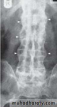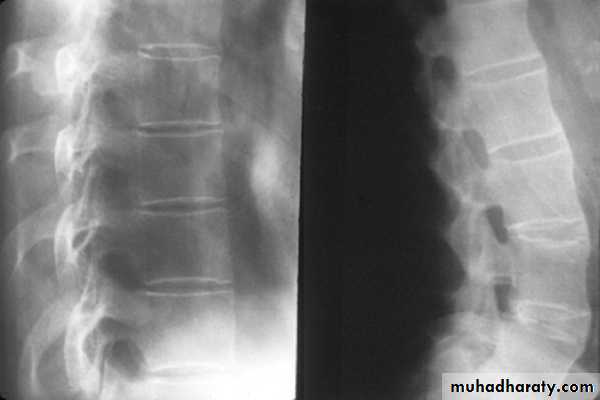 Secondary osteoporosis of the vertebral bodies frequently occurs, leading to an increased risk of vertebral fracture.