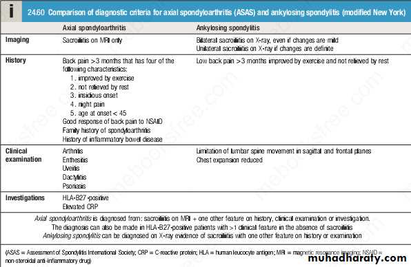 Spondyloarthropathies (SpAs) comprise a group of related inflammatory musculoskeletal diseases that show overlap in their clinical features and have a shared immunogenetic association with HLA-B27.In axial spondylitis and ankylosing spondylitis, the axial skeleton is predominantly affected.