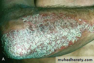 Nail changes include pitting, onycholysis, subungual hyperkeratosis and horizontal ridging, which are found in 85% of patients with PsA and can occur in the absence of skin disease.The characteristic rash of psoriasis may be widespread, or confined to the scalp, natal cleft, umbilicus and genitals, where it is easily overlooked.