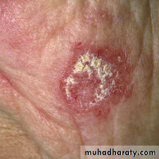 - The discoid lupus rash characterised by hyperkeratosis and follicular plugging, with scarring alopecia if it occurs on the scalp.