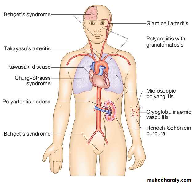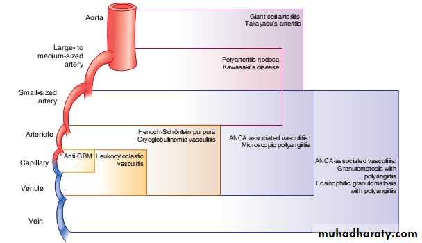 • Large vessel –giant cell arteritis ,Takayasu’s arteritis• Medium vessel –classical polyarteritis nodosa ,Kawasaki disease