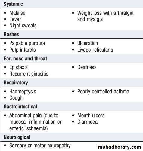 Clinical features of systemic vasculitis
