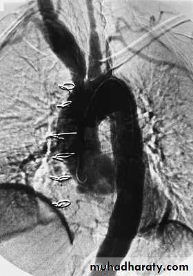 Investigations will identify an acute phase response and normocytic, normochromic anaemia.The diagnosis is based on angiography, which reveals coarctation, occlusion and aneurysmal dilatation.