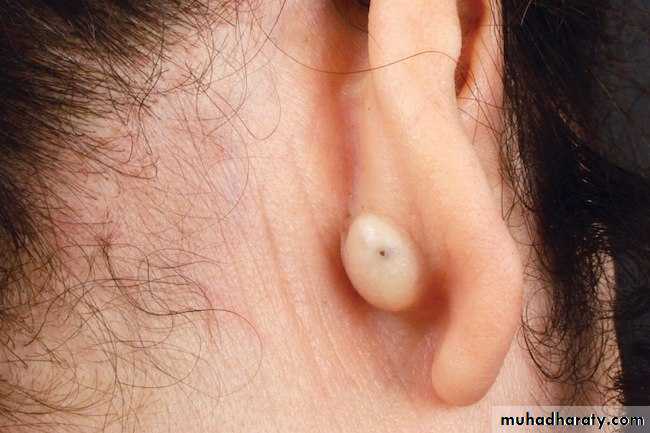 1. Epidermal inclusion cyst (epidermoid cyst)#Occurs due to implantation of epidermis into the dermis.
